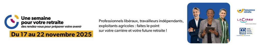 Du 17 au 22 novembre 2025, l’Assurance retraite, en partenariat avec la Cipav, la MSA et l’Urssaf, organise un événement national dédié aux travailleurs indépendants, professionnels libéraux, exploitants et salariés agricoles de plus de 55 ans. L’objectif ? Vous accompagner dans la préparation de votre retraite, en vous offrant des outils concrets pour faire le point sur votre carrière, comprendre vos droits et anticiper vos revenus futurs. Une initiative essentielle pour aborder cette étape avec sérénité et clarté.